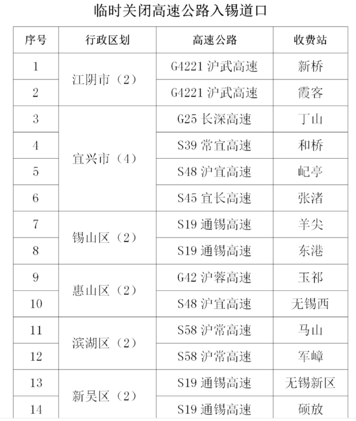 江宜高速公路(S39): 臨時(shí)關(guān)閉春江西夏墅、龍城大道、武進(jìn)經(jīng)發(fā)區(qū)、武高新西入常道口,其他正常開放。
