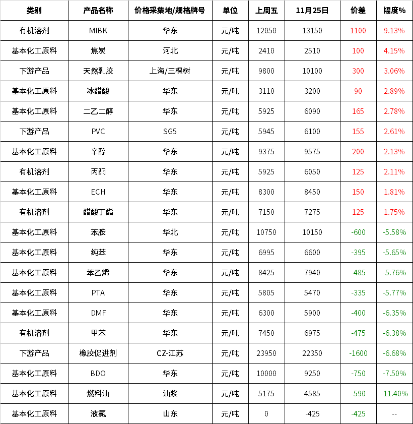 化工市場魔幻的一周:63個產(chǎn)品下跌,最高暴跌1600元!僅26個產(chǎn)品上漲,MIBK怒漲1100!