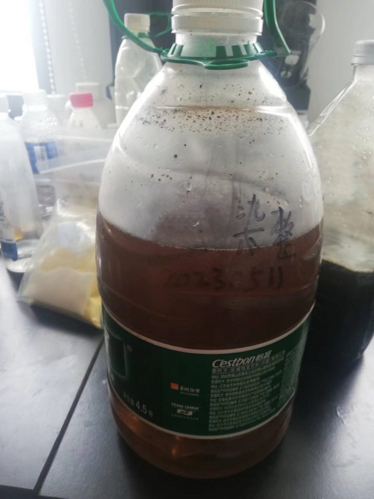 2023.5.11收到客戶公司紡織染整水樣:水質(zhì)渾濁且有不明懸浮物,偏淡橙色