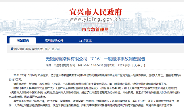 江蘇申新染料在2021年6月6日、7月16日僅隔40天內(nèi),接連發(fā)生兩起爆炸致2人死亡。