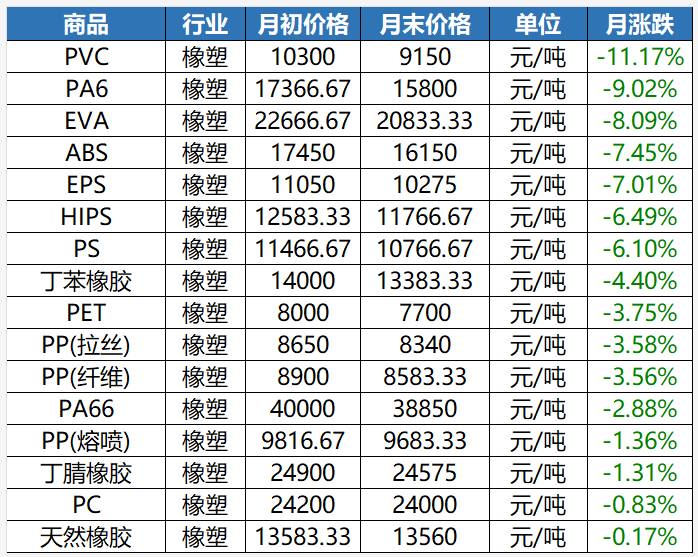 2021年11月橡塑產(chǎn)品跌價(jià)榜