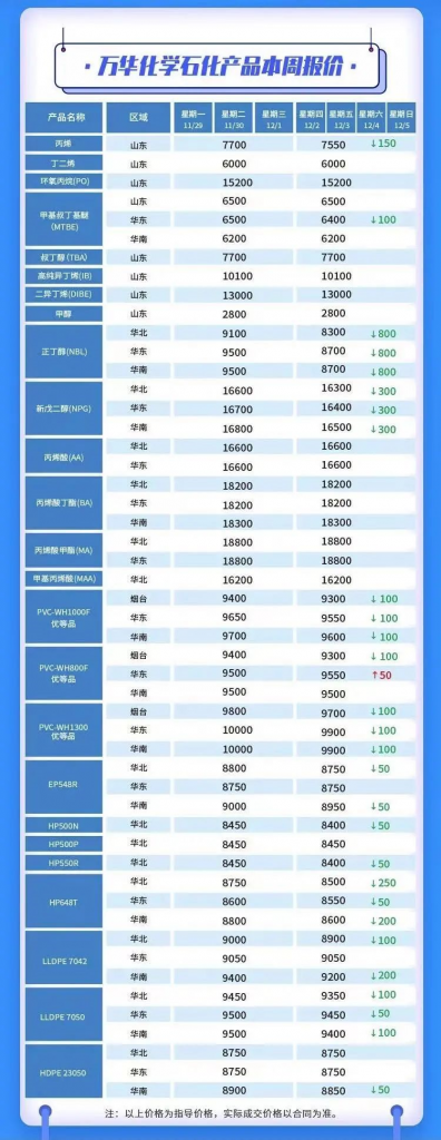萬(wàn)華化學(xué)石化產(chǎn)品本周報(bào)價(jià)