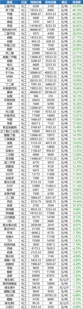 2021年11月化工產(chǎn)品跌價(jià)榜